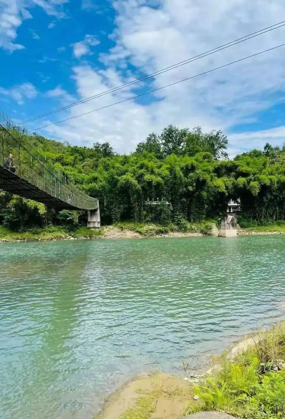 河流附近樹林茂密,可以找塊陰涼處慢慢玩,橫跨河水之上還有老吊橋,適合打卡拍照~