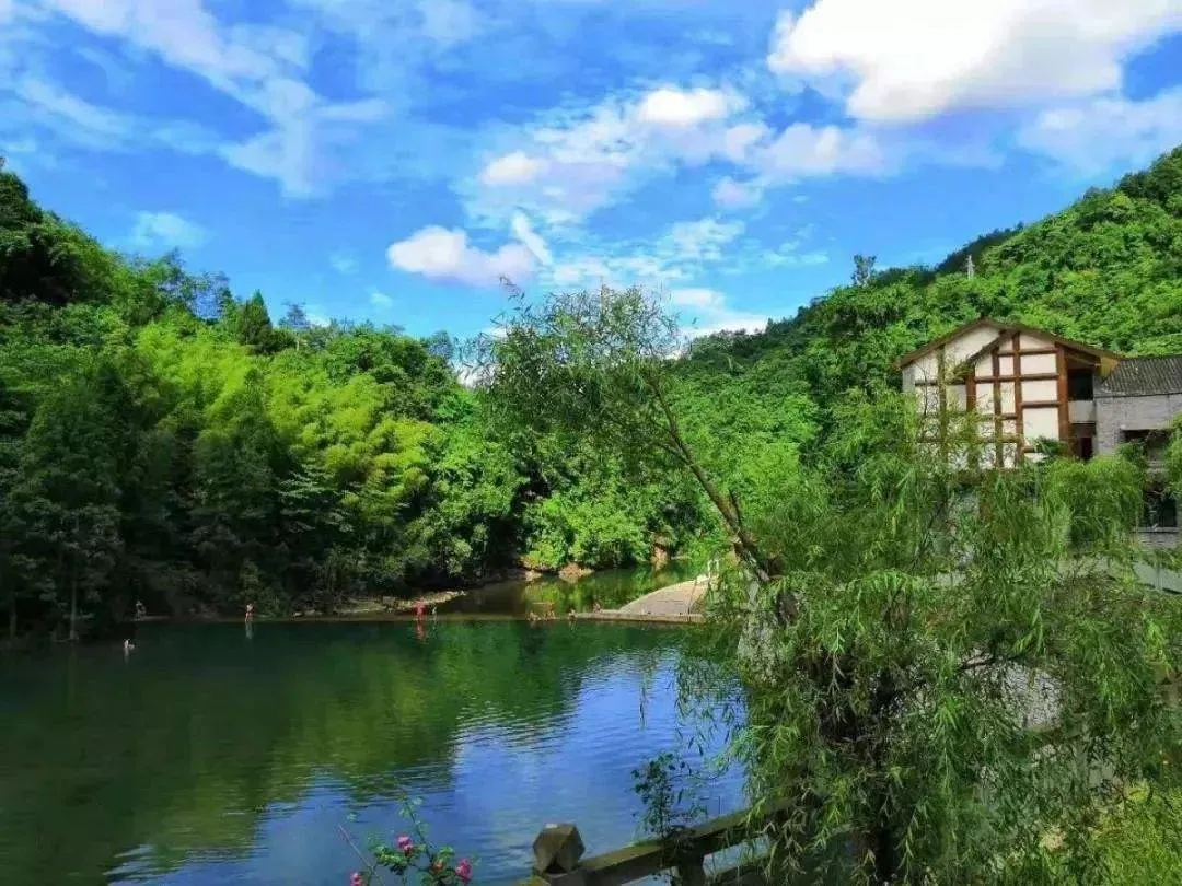 植被豐富的斜源鎮(zhèn),鎮(zhèn)邊上還有小溪潺潺流過,形成了疊溪瀑布和天然泳池,涼悠悠的,耍水特別舒服~