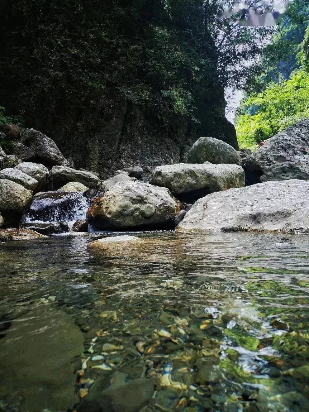 清澈的泉水緩緩流淌在各個角落,大人小孩都可以在水上歡樂玩耍。沿著溪水越往上走,水質(zhì)越好,踩水、打水仗都很方便。