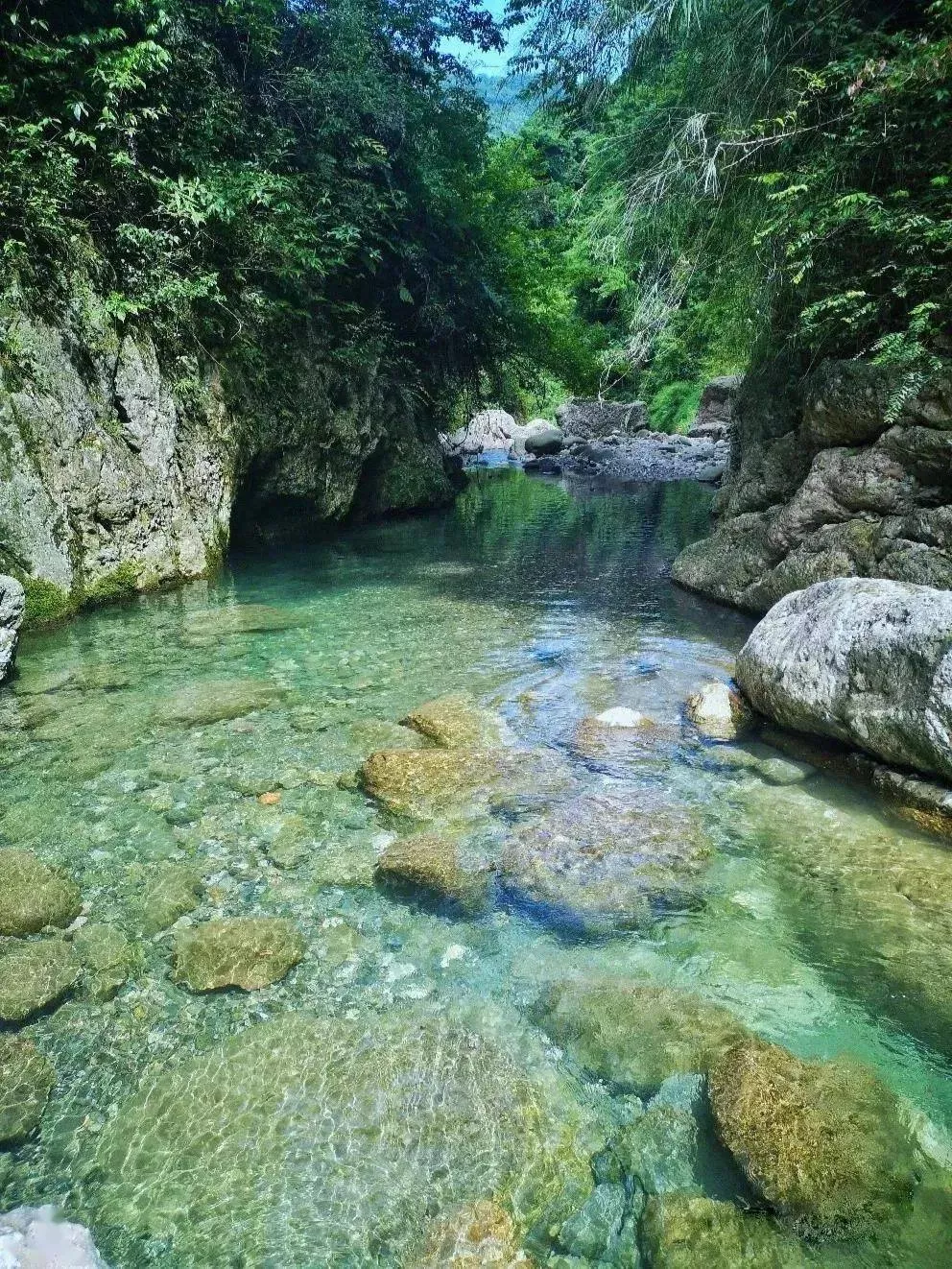 這里保留著屬于鄉(xiāng)野的那份純真,水淺且清,河灘邊上也有平坦的地方可以歇息,綠樹山野環(huán)繞,真真是又美又涼快!