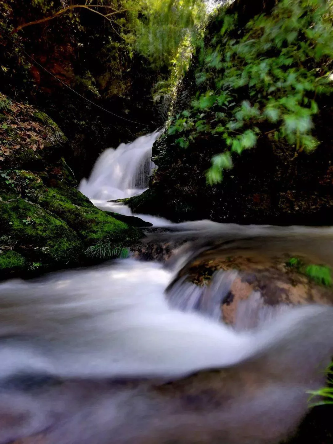 靜山間的蜿蜒河渠,由于天然地勢落差極大,天然形成了一個多級瀑布群,目前還是原生態(tài)未打造的狀態(tài),水清景美。