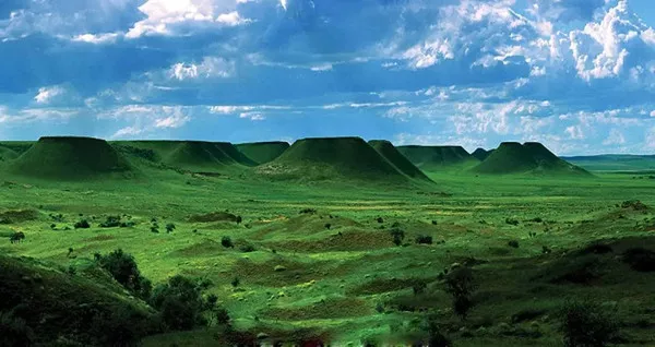 遠遠望去,平坦的草原上巍然呈現(xiàn)出10余座山頂平如刀削,山坡懸崖陡立,且排列有序,錯落有致的自然景觀。據(jù)地質(zhì)學(xué)家考證,錫林郭勒平頂山為億萬年火山噴發(fā)而成,景色優(yōu)美。