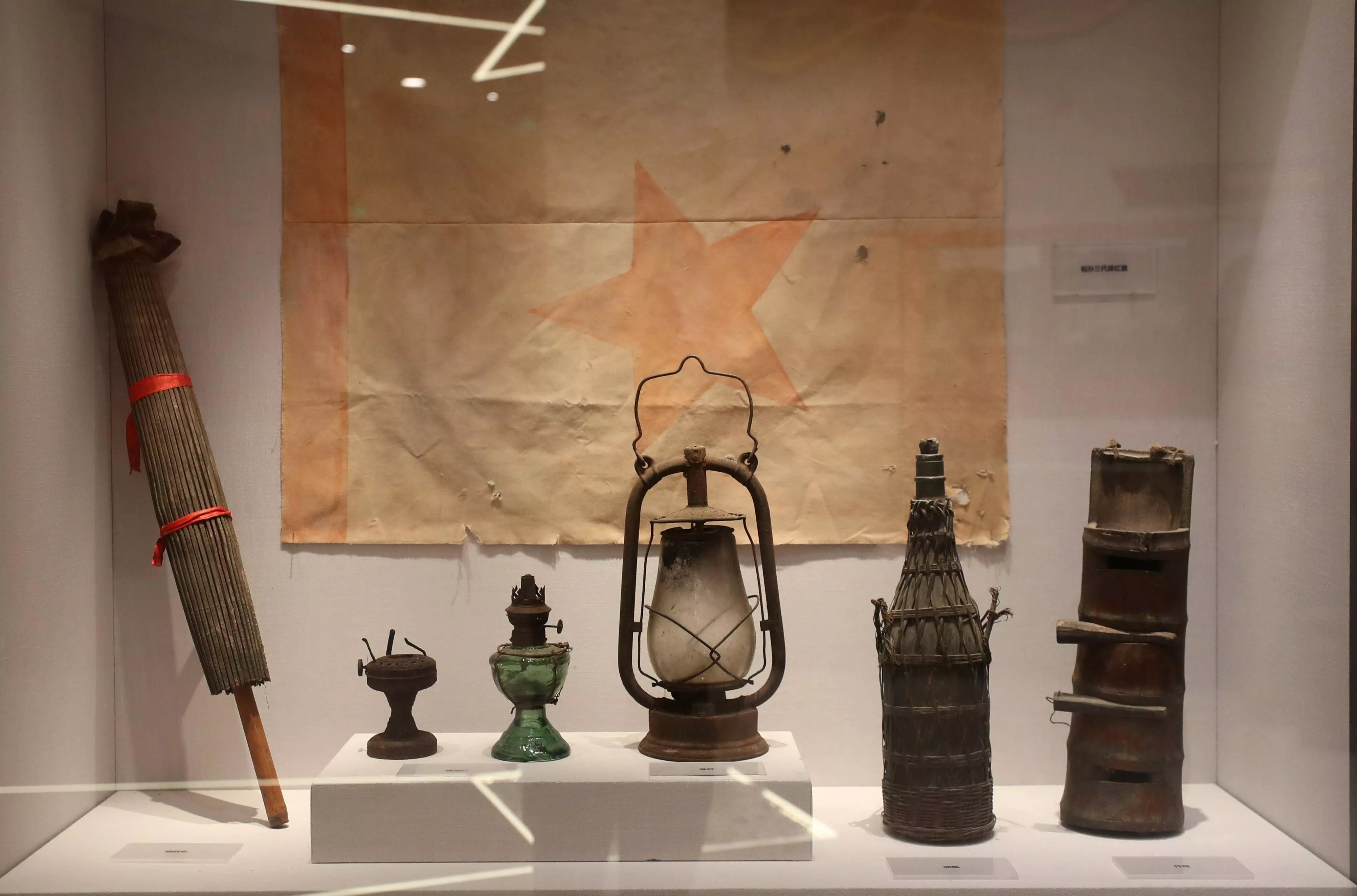 新圩阻擊戰(zhàn)史實(shí)陳列館內(nèi)展示的紅軍時期使用的生活用品。中國日報記者 張威 攝 【責(zé)任編輯:妮思娜】