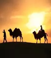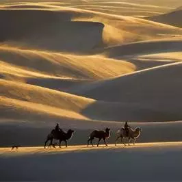 夕陽下沙海沉靜駝鈴聲聲