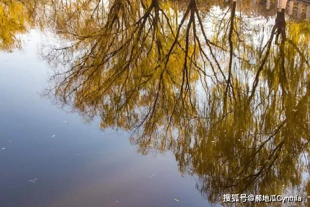 來到公園,不僅僅是為了紀(jì)念館而來,也是因為這滿園的秋意而來,午后的陽光暖洋洋的。站在水池邊,樹影倒映在水面上,顯得格外的清晰,歲月靜好也不過如此。