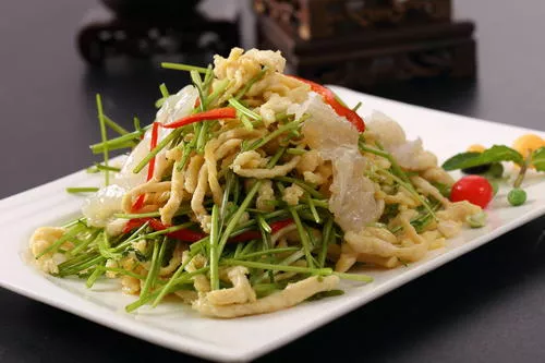 蜇皮雞絲 浙江 ? 溫州 ? 洞頭 海蜇皮浸水去澀咸腥味,切絲,用冷開(kāi)水漂洗疬干。雞絲加生粉、鹽、酒、糖、胡椒粉拌腌,放入沸豬油內(nèi)泡熟,撈起攤涼。綠豆芽、紅蘿卜絲、青紅辣椒絲一同快速炒熟。雞蛋煎成薄塊切絲。上料都備齊后,加豬油和麻油拌勻,裝盤(pán),上加香菜加火腿絲 ( 溫州) 贊 (0) 39 151 生成海報(bào) 雞翅海參 下一篇 0001-01-01 松炸蝦球 上一篇 0001-01-01 相關(guān)推薦
