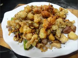 新鮮貝肉,配以蝦泥、咸蛋黃、生豬肥膘、荸薺碎、蔥白等原料,外沾面包屑,炸制成菜,形似金錢,食之香脆鮮嫩 ( 溫州)