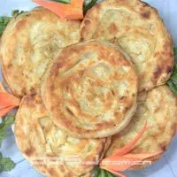 相傳明代,民族英雄戚繼光在白水洋上峰嶺抗倭時,戰(zhàn)斗較緊張,要求當地老百姓準備一些干糧,最好可以串起來,掛在身上,可以邊打仗,邊吃干糧。后來,軍隊路過湖頭、長潭時,當地的老百姓 就想到張家渡街開有糕餅店,于是,就派人到張家渡聯(lián)系訂貨。張家渡糕餅店得知這種情況后,就想辦法把原來扁圓形的燒餅,改成 外形有角,中間有一個小洞,這樣烤熟后用繩子串起來不會破碎,清代時,隨著當地經濟的發(fā)展,張家渡的燒餅形狀也隨之改 變,變得像古時的銅錢一樣,外圓內方,老百姓稱它為“銅錢餅”,寓意為對內要規(guī)規(guī)矩矩,堂堂正正,對外做生意時要圓通、靈活,要隨 機應變。有的稱此餅為“肚臍餅”。在此同時,張家渡還生產火燒餅?;馃炗袃煞N,一種是咸的,餅里包有腋過的切成小碎塊的肥 豬肉、大蔥;一種是甜的,餅里包有豆沙、白糖。這兩種火燒餅都是 在燒餅爐中,用白炭火烤熟的。至于吃起來是否會脆口,關鍵是 :‘酥,’的分量,“酥”的分量多,燒餅則好吃?!八帧保怯韶i油和小麥 粉拌在一起揉成的