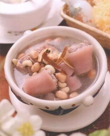 花生豬尾湯 湖南 ? 長沙 原 料 豬尾3根,花生150克,丁香少許;米酒1小匙,鹽少許。 做 法 1、豬尾毛剔干凈剁成小段,以滾水汆燙洗凈。2、燉鍋倒入水1200毫升,加花生煮1小時。3、鍋熱加少許油,放入豬尾炒至皮稍焦黃。4、花生湯加入炒好的豬尾,丁香燉1小時,加米酒和鹽調(diào)味即成。 豬尾毛多,可用鐵鉗夾著在爐火上燒干,然后泡進熱水再刮干凈。特色:功效:補血,通乳。 贊 (0) 39 151 生成海報 砂仁糕 下一篇 0001-01-01 蒜香香腸 上一篇 0001-01-01 相關(guān)推薦