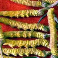 [來源] 麥角菌科(Clavicinitaccae)真菌涼山蟲草Cordyceps liangshanensis Zang,Liu et Hu寄生在鱗翅目(Leaidootera)昆蟲幼蟲的子座和幼蟲尸體的干燥物。 [性狀] 蟲體略似蠶,稍彎曲,長約4cm,直徑5-9mm;表面被棕至棕褐色絨毛,絨毛脫落處可見紫褐色角皮,有環(huán)紋9~12個;頭部紅褐色,腹部有足約10對。子座多分枝或單生,長達(dá)30cm,圓柱狀,褐或黑褐色,頂端具不孕性角尖。質(zhì)堅脆,易折斷,斷面黃白色。氣微腥,味淡。 [鑒別] 囊殼表面生,基部突出于子座外,卵形,黑褐色;子囊孢子線形,橫隔明顯;菌絲膜黃褐至棕褐色,菌絲多不分枝。