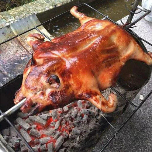 烤巴馬香豬是廣西河池特色名菜之一,選用河池本地特產(chǎn)巴馬香豬為原料,用掛爐烤制而成。巴馬香豬其骨細皮酥,肉質(zhì)細嫩,肌肉鮮紅,味美甘香,營養(yǎng)豐富,勝似山珍野味,因而外地人食之甚感鮮香,逐傳名為“香豬”。巴馬香豬烹調(diào)時不添加任何佐料也香氣撲鼻,素有“一家煮肉四鄰香,七里之遙聞其味”之美稱,被譽為豬類的“名門貴族”。巴馬香豬常見的吃法是烤巴馬香豬和白切巴馬香豬,這兩種做法都是以口味地道、原汁原味而聞名??景婉R香豬入選廣西商務(wù)廳評選的“20道廣西桂菜特色名菜”名單?!驹敿殹?