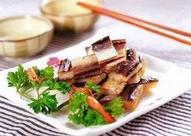新風(fēng)鰻鲞是浙江寧波地區(qū)傳統(tǒng)的特色風(fēng)味名菜,用海鰻制作。每年臘冬,正是捕撈海鰻的旺季,此時(shí)又是西北風(fēng)季節(jié),把海鰻剖肚挖臟后,掛在避陽(yáng)的通風(fēng)處晾干,便為佳品。當(dāng)?shù)鼐用癜堰@段時(shí)間晾制的鰻魚干,冠以“新風(fēng)”,故而得名。因?yàn)椤靶嘛L(fēng)鰻鲞”肉質(zhì)豐滿,鮮咸合一,風(fēng)味獨(dú)具,所以很受人們歡迎,民間至今仍有“新風(fēng)鰻鲞味勝雞”之說(shuō)?!驹敿?xì)】