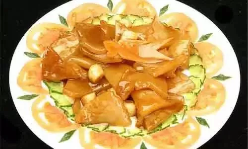 紅燒裙邊是河北唐山一道具有代表性的傳統(tǒng)名肴,其特點是軟滑味,湯濃味鮮,裙邊嫩糯。此菜采用新鮮黿裙邊,裙邊就是甲魚殼外圍的一圈軟肉,很軟滑,加入火腿、蔥、姜、淀粉、菜心、雞湯、鹽、芝、料酒、醬油等,調(diào)料的味道滲透到裙邊里,裙邊里的鮮味也散發(fā)到湯里,滋味特別鮮美。紅燒裙邊的制作工藝十分精細(xì),因此其熬出來的湯具有軟滑現(xiàn)弄、裙邊嫩糯等特點,同時其又有很多蔬菜作為輔助,富含維生素和礦物質(zhì),營養(yǎng)價值極高,深得當(dāng)?shù)鼐用窦坝慰偷南矏?。【詳?xì)】