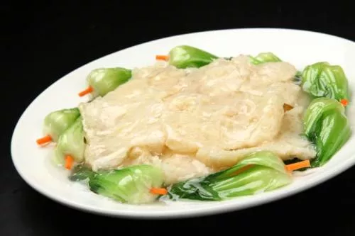 扒廣肚是河南一道色香味俱全的傳統(tǒng)名菜,屬于豫菜系,也是河南傳統(tǒng)高檔宴席廣肚席的頭菜,此菜將質(zhì)地綿軟白亮的廣肚片片,氽殺后鋪在竹扒算上,用上好的奶湯小武火扒制而成,成品柔、嫩、醇、美,湯汁白亮光潤,故又名白扒廣肚。廣肚入饌,七分在發(fā)(漲發(fā),系豫菜廚師絕技),三分在烹,漲發(fā)技藝要求極高,而漲發(fā)廣肚的難度更高,沒有十年灶上功夫,很難準確掌握,一般油發(fā)至膨松內(nèi)透,松泡狀似海綿即可,經(jīng)水反復(fù)漂洗至凈白,無異味,這時廣肚蓬松軟脆,潔白中透出淺黃,形成柔嫩軟脆,醇厚濃美,光潤鮮香,湯汁白亮的獨特風味。扒廣肚被中國烹飪協(xié)