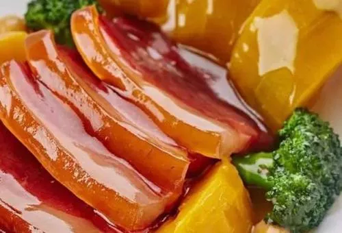 蜜汁火方又叫蜜火腿,屬于浙菜,是金華著名的傳統(tǒng)名菜,也是金華火腿名菜的代表菜,杭幫菜、蘇菜也有收錄。清代袁枚在《隨園食單》中對(duì)此菜有這樣的敘述:“取上等火腿,連皮切成大方塊,用蜜酒煨爛,余居家燉之,香氣隔戶相聞;品之,甘鮮異常,出婺后不再遇此尤物矣”。蜜汁火方選用金華特產(chǎn)金華火腿,金絲蜜棗、白糖、糖桂花、金華酒等,其色澤火紅,鹵汁透明,令人回味。此菜色澤紅潤(rùn),入口香酥,獨(dú)具地方風(fēng)格?!驹敿?xì)】