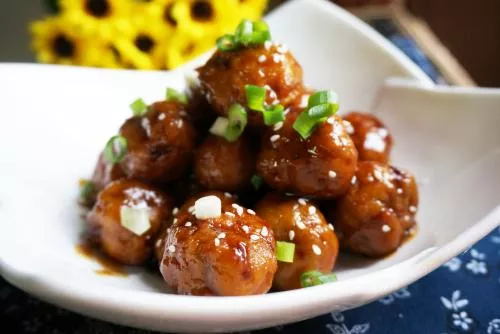 紅燒藕丸是煙臺(tái)的地方特色名菜之一,屬于魯菜系膠東菜,因?yàn)橹髁现杏絮r藕,而得名,是一道用紅燒技法烹飪的丸子。紅燒藕丸做法簡單,將藕削去皮、切除節(jié)洗凈,用刀斬成茸放在碗內(nèi),加入雞蛋、精鹽、味精、面粉、蔥、姜末,拌勻成餡。將藕餡擠成核桃大小的丸于,放入鍋內(nèi)炸成金黃色,放入少許開水,倒入藕丸,上火燒沸,加醬油、白糖,蓋上鍋蓋,燒約5分鐘,起鍋裝盤即成。此菜特點(diǎn)是外香內(nèi)脆,鮮美可口,清淡去火。【詳細(xì)】